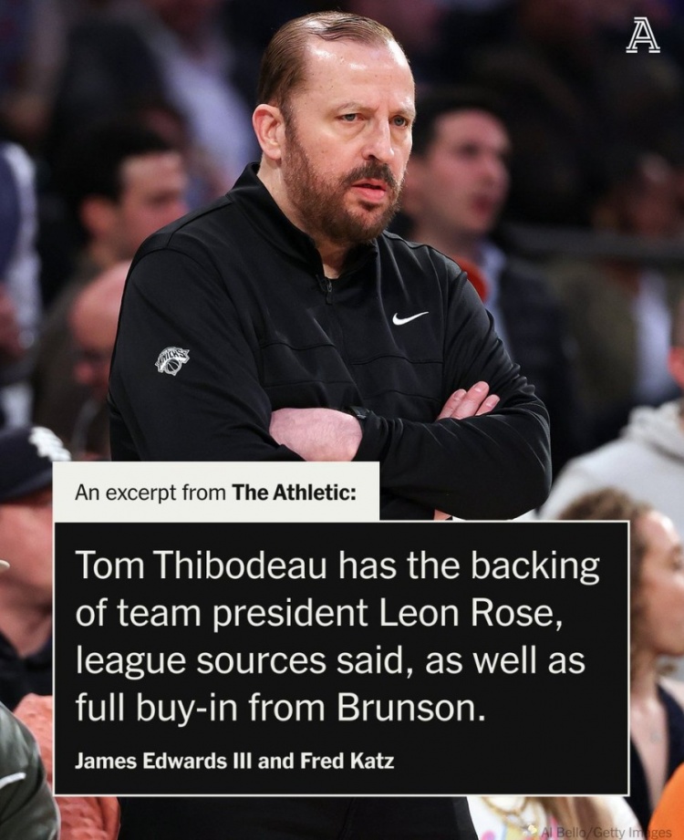 消息人士还表示,锡伯杜得到了球队总裁莱昂-罗斯的支持,同时布伦森也全力支持他。布伦森在2022年加盟尼克斯的部分原因是他希望为锡伯杜效力。但最终,老板詹姆斯-多兰才是最终决策者。