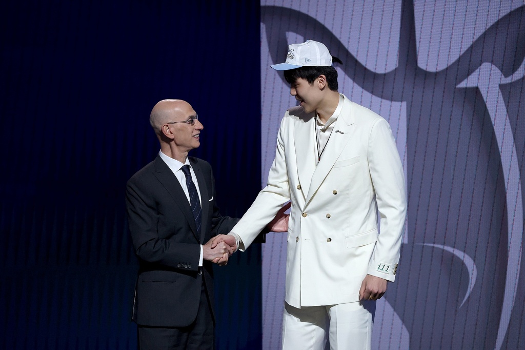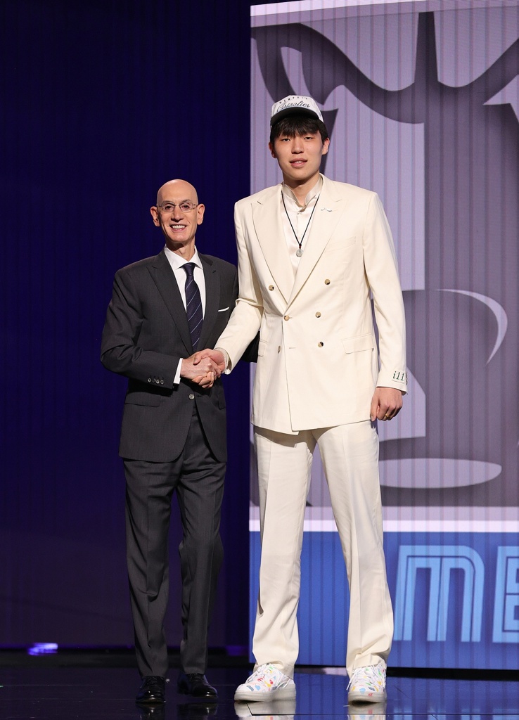 06月26日讯 2025年NBA选秀大会,中国球员杨瀚森被开拓者用从灰熊交易来的16号签选中。