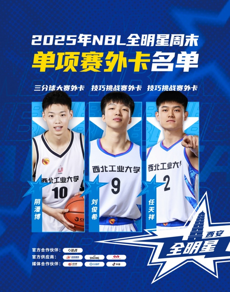 2025年NBL全明星赛单项赛将迎来三位来自西北工业大学的外卡球员。他们将分别参加技赛和三分球大赛。