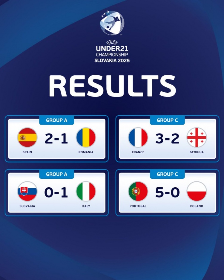 本组西班牙U21、意大利U21均2胜积6分提前出线,斯洛伐克U21、罗马尼亚U21列三四名,两队均0分。