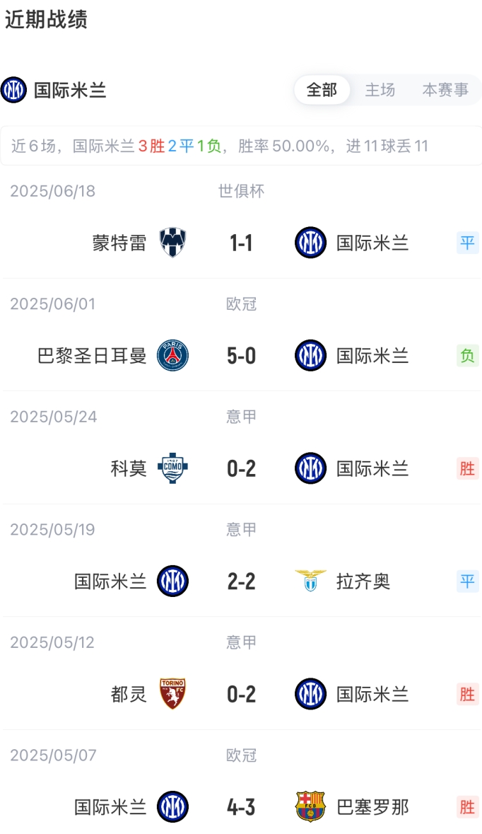 国米首发:1-索默、6-德弗里、30-奥古斯托、32-迪马尔科、36-达米安、11-路易斯-恩里克、21-阿斯拉尼、23-巴雷拉、59-扎莱夫斯基、10-劳塔罗、70-塞巴斯蒂亚诺-埃斯波西托